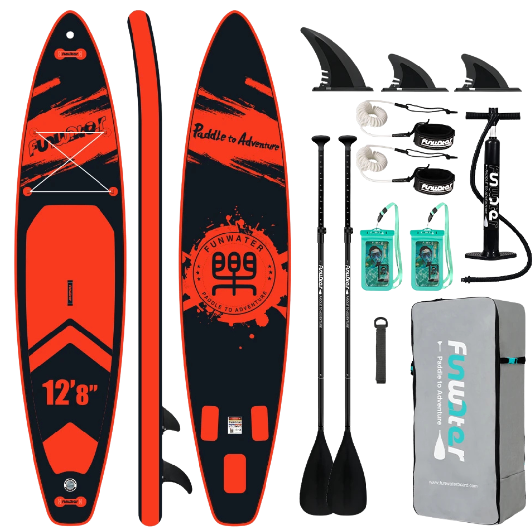 ✅ Pack ultra-complet – Deux pagaies, deux leash, deux étuis étanches, pompe et sac de transport inclus.